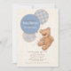 É um menino! Celebre o seu novo bebê com este belo convite de chá de fraldas. Esta design apresenta uma ilustração de urso desenhada pela mão com xadrez de búfalo fofa ou balões azuis com padrão de gingham azul. Esquema de cores azul e castanho excelente para uma festa de chá de fraldas de ursinho fofo. Este convite é personalizável e permite- lhe inserir todo o seu próprio texto e detalhes. Envie estes adoráveis convites para ursos de pelúcia e jogue o chá de fraldas do urso de pelúcia mais bonito de todos os tempos! A parte de trás deste convite para chás de fraldas de ursos peludos tem mais xadrezes super fofinhas e azuis ou fundo azul de gingham.