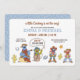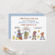 Celebre a chegada de um cowboy com este adorável convite para chá de fraldas da Rua Sésamo! A design apresenta personagens adorados da Rua Sesame vestidos de vaqueiros e vaqueiras alegres, incluindo o Big Bird com um chapéu azul de bandana e de vaqueiro, o Monstro do Biscoito segurando um biscoito em roupas ocidentais, o Grover tirando seu chapéu e o Elmo acenando em um belo terno de vaqueiro. Acentos ocidentais como cactos, ferraduras de cavalos, estrelas, e um lasso cercam a cena lúdica, acrescentando encanto extra ao tema rústico. O texto é acentuado em marrom quente e azul-céu, com detalhes personalizáveis para nomes, data, hora, local e informações de RSVP. Perfeito para dar o tom para um chá de fraldas de estilo country, divertido, honrando seu pequeno balde.