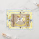 Impressão amarelo do bandanna com guarnição do sarja de Nimes-olhar e um design de cartão temático do convite do chá de fraldas do vaqueiro do cavalo de balanço.