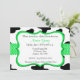 Convide seus convidados em uma maneira bonito e do divertimento a seu chá de fraldas, a festa de aniversário ou a toda a ocasião com este impressão da vaca que caracteriza a guarnição verde.