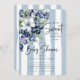 Celebre a chegada do seu pequeno com nosso encantador convite para Chás de fraldas de mirtilo Blueberry. Este design delicioso apresenta amoras azuis, folhas verdes vibrantes e flores brancas delicadas, todas lindamente colocadas contra um fundo clássico, azul e branco listrado. Perfeito para uma celebração doce de morango, este convite dá o tom para um encontro alegre, convidando amigos e família a compartilhar o entusiasmo de sua família em crescimento. Faça seu chá de fraldas inesquecível com este convite elegante e caprichoso que captura a essência do seu dia especial.