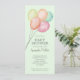 Balões de multicores com aquarela em um fundo verde-hortelã-claro, este design é perfeito para convites para bebês neurais de gênero. CORRESPONDENTE a itens na nossa coleção.