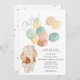 Um doce, moderno design de aquarela para um chá de fraldas bebê. Apresentando 'Oh Boy!' na tipografia moderna da escrita em teal, e um bebê elefante e balões em modernas cores mutadas de terracota, blush, ouro e verde. A parte de trás do convite apresenta um padrão pontilhado em cores correspondentes. Entre em contato com o designer para produtos correspondentes. Copyright Elegant Invites, todos os direitos reservados.
