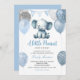Convites Chá de fraldas dos Balões Elephant Boy com aquarel