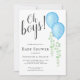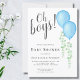 Este gêmeo casal no Convite para Chás de fraldas de rapazes está decorado com balões azuis de cor d'água e eucalipto verde e diz "Oh Meninos!" Facilmente personalizável. Original Watercolor © Michele Davies.