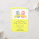 Celebre a chegada de seus gêmeos com esse bebê e bebê bonitinho com convite de chá para pacificantes. O texto em branco diz "Estamos tendo gêmeos!". Personalize facilmente com os detalhes da sua parte no texto da cinza disponível. Plano de fundo amarelo e branco elegante na página inversa.