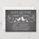 O convite na moda do chá de fraldas do quadro do vintage caracteriza um fundo cinzento preto do quadro com um casal branco do pássaro do amor que senta-se em um ramo do flourish do redemoinho com um coração vermelho. Convite moderno & à moda do chá de fraldas do casal a preços disponíveis para todos os orçamentos.