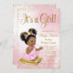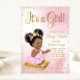 A princesa africana americana convida a chá de fraldas com uma adorável menina de princesa étnica africana-americana com rabos-de-cavalo e arcos vestindo um tutu cor-de-rosa friável e uma coroa de ouro com uma corda de pérolas sentadas sobre um travesseiro de ouro em um lindo fundo cor-de-rosa e ouro. Este elegante convite para chás de fraldas cor-de-rosa e dourado é facilmente personalizado para o seu evento, adicionando os seus detalhes no estilo de letra, cor e texto da sua escolha. Você também pode remover o plano de fundo da parte frontal e traseira e adicionar a cor de fundo de sua escolha.
