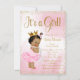 Chá de fraldas da princesa africana-americana com uma adorável princesa étnica, menina, vestindo tutu rosa e coroa dourada com uma corda de pérolas em um lindo fundo rosa e dourado. Este elegante convite para chás de fraldas cor-de-rosa e dourado é facilmente personalizado para o seu evento, adicionando os seus detalhes no estilo de letra, cor e texto da sua escolha. Você também pode remover o plano de fundo e adicionar a cor de sua escolha. Este é um design impresso sem brilho real, pérolas, etc.