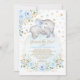 Convites Chá de fraldas Dourado Azul De Elefante Adorável P