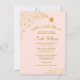 O rosa e o dourado brilham... os convites para bebês. Apresentando estrelas douradas falsas e sotaques de cor-de-rosa macio. Uma design de tendências para um chá de fraldas moderno.