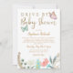 Cartão modelo de convite para chá de fraldas de , doce, com borboleta cor-de-rosa e menta, com embelezamentos de ouro falsos. Este cartão aos hóspedes para passarem com o carro deles para mostrar apoio e amor durante este tempo em que não nos conseguimos reunir devido à pandemia. Há flores no fundo.