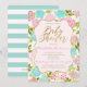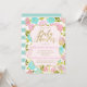 Incrível contraste de aqua a rosas de rosa claro e folhas verdes brilhantes em um fundo verde-claro e bolinhas brancas. OBSERVE que, se você alterar a fonte ou o tamanho da fonte, ela poderá alterar a forma como o seu convite impressão. Ele vai impressão como você vê no seu monitor. Não verei seu cartão assim que você o solicitar, e o Zazzle NÃO editará nada (digitar, alinhamento, etc.). Mostrado aqui em papel básico