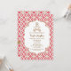 O elegante e belo francês marroquino inspirou convites para o chá de bebê com uma matiz colorida repetitiva de fúcsia rosa-quente e padrão geométrico de ouro design e flores florais de ouro. Este convite de aparência altíssima e luxuosa é perfeito para qualquer chá de fraldas formal, exótico, marroquino, árabe ou aladino de menina temida. A parte traseira desses convites personalizados de quadro de rico pode ser personalizada com o nome da mamãe a ser e o nome do evento na forma quatrefoil e na design de aparência de fita impressa. Trabalho de arte e design © Chrissy H. Estúdios, LLC. Todos os direitos reservados.