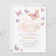 Convites Chá de fraldas Dourado de borboleta rosa-rosa