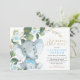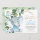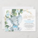 Este simples mas elegante convite para chás de fraldas apresenta um adorável elefante para bebês, rosas azuis elegantes e verde-aquarela moderno em verde e ouro macio. Vem com um padrão de folha correspondente no verso. Use os campos modelo para adicionar seus detalhes. Para alterar o estilo, cor ou posicionamento do texto da fonte, basta clicar no botão "Personalizar mais".