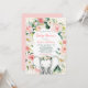 Este doce convite de chá de fraldas elefante é feminino e chique. A design apresenta uma camada verde de aquarelas com flores rosa e brancas, falso foil de ouro confetti e ilustração de elefante para bebês. Adicione facilmente suas informações usando os campos de modelo on-line.