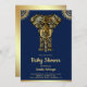 Convites Chá de fraldas Dourado de Elefante Indiano Azul