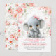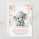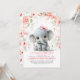 Confira este adorável convite de chá de fraldas para comemorar uma menina! O convite apresenta uma menina elefante bebê encantadora vestindo um arco rosa giro na cabeça, rodeada por cinzas e balões cor-de-rosa, confete de ouro, e flores esmagadas com verde sábio. Mas espera, há mais! Você também verá borboletas voadoras e uma garrafa de leite de bebê, simbolizando que tudo aqui é sobre os bebês. O doce título "A Sweet Little Girl está a caminho!" é certamente o de trazer um sorriso ao rosto de todos e aquecer os seus corações. Além disso, todos os campos de texto são editáveis, então você pode personalizar o título para dizer "Um amendoim doce está a caminho" ou "É uma garota!" Você também pode personalizá-lo adicionando o nome da mãe e as palavras "chá de fraldas".