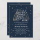 Um convite para o Chá de fraldas das Estrelas Pequenas e Bonitas Twinkle Twinkle, com um fundo azul-marinho de tendência, um arco-íris abstrato de ouro falso, uma dispersão de estrelas douradas e um modelo moderno que é fácil de personalizar.