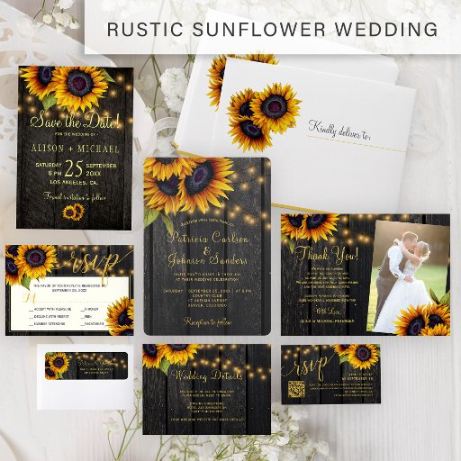Rustic country sunflower barn wood wedding suiteCriado por Anka Designs