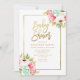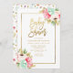 O convite para chás de fraldas moderno, brilhante e fresco, com a tipografia moderna e dourada e as lindas aquarelas pastel. Por favor, entre em contato comigo na loja com qualquer pergunta relacionada ao design.