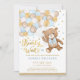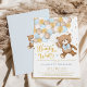 Este adorável convite temático do ursinho coloca um sorriso nos rostos dos seus hóspedes! O esquema de cores azul, castanho, bege e dourado torna este design perfeito para um chá de fraldas de menino. Personalize o convite com seus detalhes e se quiser reorganizar o estilo e posicionamento do texto, pressione o botão "Clique para personalizar mais".