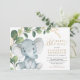 Este simples mas elegante convite para o chá de fraldas apresenta um adorável elefante bebê e um verde-aquarela moderno em verde macio e ouro. Vem com um padrão de folha correspondente no verso. Use os campos modelo para adicionar seus detalhes. Se quiser alterar o estilo da fonte, a cor ou o posicionamento do texto, basta clicar no botão "Personalizar Mais".