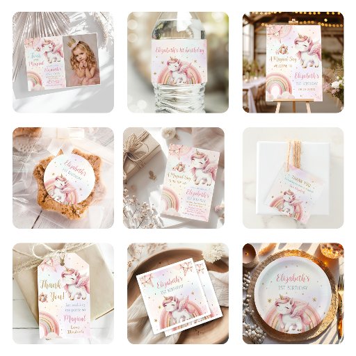 Convite para Chá de fraldas Dourado do Unicorn Rainbow Pink