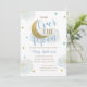 Convites Chá de fraldas Dourado e azul de Lua de Aquarela