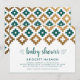 Na tendência, o esmerald green e o white ganham um punch de brilho com brilho de ouro falso em um padrão asteca tribal estilo chic e moderno. Ideal para a mãe moderna, que ama a design moderna e neutra em termos de gênero com uma sugestão de talento glâmico-boêmico, este convite para chás de fraldas é facilmente modificado de acordo com as suas necessidades de convite.