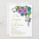 Convites Chá de fraldas Dourado Floral Azul Roxo