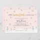 Celebre um dia especial para seu amado com este belo convite da terra maravilhosa do inverno! Este design apresenta flocos de neve com brilho prateado e texto dourado " Um pequeno floco de neve está a caminho" sobre fundo rosa-claro. Um convite perfeito para o chá de fraldas do tema do inverno ou para a aspersão de bebês.