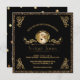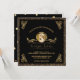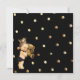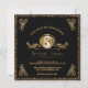 O chá chique do bebé convida no preto e o ouro com toques de rolos elegantes do olhar do metal do ouro do falso do estilo do art deco decora os cantos. É centrado um quadro decorativo do círculo do efeito metálico do ouro e os rolos da folha com um príncipe pequeno considerável que veste um ouro coroam, fralda preta, deslizadores, e laço, e guardarar seu urso de ursinho favorito. Estão abaixo os detalhes do nome e do costume da mãe na rotulação hued do ouro, incluindo detalhes de RSVP. Acentos da beira do brilho do ouro do falso. A parte traseira tem o fundo preto com as bolinhas metálicas do olhar do ouro e o príncipe pequeno de harmonização no canto mais baixo. Em preto sofisticado e em ouro. Nota: Todas as imagens são imprimidas. Brilho nao real ou metal.