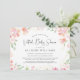 Quando a família e os amigos não podem estar juntos, celebre a futura mãe com um chá de fraldas virtual online. Este convite para chá de fraldas apresenta flores impressionistas de aquarela cor-de-rosa e coral com sotaques dourados, e "Chá de fraldas virtual" escrito em um roteiro de na moda bonito. Você pode personalizar facilmente os detalhes do chá on-line, incluindo um link de acesso on-line, informações de registro, onde enviar cartões e presentes ou a opção de abrir on-line e enviar posteriormente, e um contato para RSVPs e mais informações.