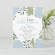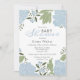 Romântica Bloom Floral, Bonito Pêonias Azuis Dusty e Quadro Verde em Branco este Convite para Chás de fraldas.