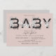 Chá Dusty Florals Baby Girl Invitation com a palavra "Baby" com buquê floral ilustrado manualmente com botânico, flores, ramos e outros elementos naturais. Personalize com as informações do seu chá de fraldas.