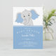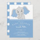 Convite para Chá de fraldas de elefante bonito com o mais doce elefante colocado em fundo de bolinhas azul para um chá de fraldas de rapazes.
