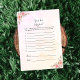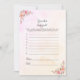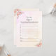 Fundo de cor-de-água cor-de-rosa e cor-de-rosa com cantos florais à frente. Este é um jogo de chá de fraldas de Adivinhação da Comida do Bebê. Elefante de menina adorável com flores acima do ouvido e um spray floral sob os dedos das costas. Modelos fornecidos para você, é uma maneira fácil de fazer isso para sua festa.