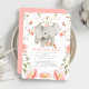 Este belo convite para o chá de fraldas "Bonjour Bébé" apresenta um elefante com uma boina cor-de-rosa e um croissant rodeado de flores rosas silvestres. O verso apresenta um fundo cor-de-rosa com padrões brancos de bolinhas. Personalize-o para as suas necessidades. Você pode encontrar mais produtos elefantes na minha loja.