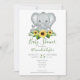 O Chá de fraldas Elefante Personalizado Convite de Ricaso ... com detalhes de padrão verde e branco de cunha ... um bonito design feminino animal, flor e bolinhas para a mãe ser - fácil de personalizar - disponível em diferentes opções de cores