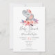 O Chá de fraldas Elefante Personalizado Convite de Ricaso ... com pessegueira e padrão branco detalhado.. um bonito design feminino animal, flor e bolinhas para a mãe estar - fácil de personalizar - disponível em diferentes opções de cores
