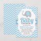 Convite para Chá de fraldas de Elefante Moderno Branco de Cinzas Azuis Brancas | Convite para Chá de fraldas Chevron
