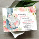 Convites Chá de fraldas elefante creme cor-de-rosa floral