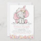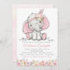 Chá de fraldas de elefante com adorável elefante de menina com lindas bandas de cabeceira em um lindo fundo floral cor-de-água rosa e amarelo. Você pode adicionar o texto de sua escolha, e você pode mudar a cor de fundo nestes convites para bebês e elefantes bonitos.
