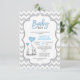 Convites Chá de fraldas Elefante de Cinza Azul-Chevron-Cute