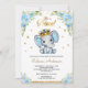 Convites Chá de fraldas Elefante Príncipe Floral Bonito