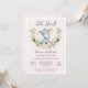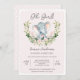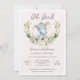 Chá de fraldas de elefante, cor-de-rosa, cor-de-rosa, convite ao chá de fraldas de elefante para uma menina com ilustração de elefante giro, coroa floral rosa e fundo rosa com borda branca. Este convite para chás de fraldas de elefantes é ideal para um chá de fraldas temático de elefante para uma menina.