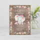 Adorável design chá de de menina com a menina mais doce elefante enquadrado com a terra cor-de-água rosa, adornada com um confete dourado. Sacudir o nosso convite para ver um floral cor-de-rosa.