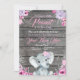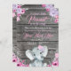 Convites Chá de fraldas Elefante, rústico, roxo rosa